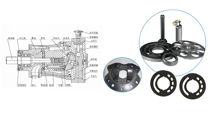 柱塞泵部件覆有自潤滑涂層,在高壓和過載情況下,自潤滑涂層可大幅提升搖擺與搖擺座、缸體與配油盤以及滑靴與回程盤等耐磨損性能、抗咬合性能。